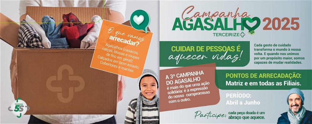 Pequenas atitudes, quando feitas com empatia e propósito, têm o poder de transformar vidas. É com esse espírito que realizamos, todos os anos, a Campanha do Agasalho T+, que reforça nosso compromisso com o bem-estar das comunidades onde atuamos. A ação faz parte do nosso Programa 5S, que promove organização, solidariedade e consciência social no ambiente de trabalho.